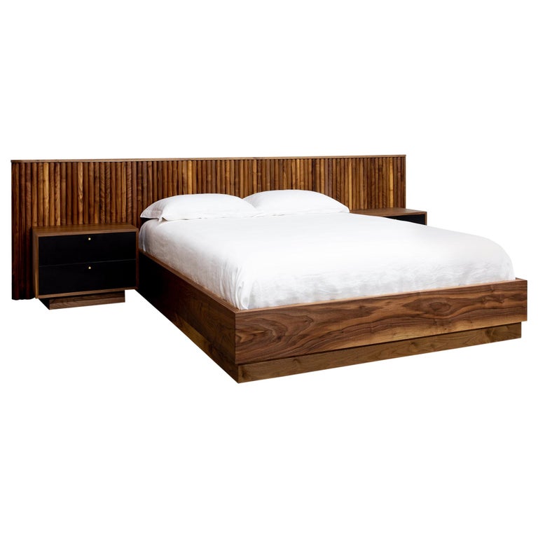 Brutalist Inspired Walnut Bed W Integrated Leather Nightstands By Kate Duncan For Sale At 1stdibs